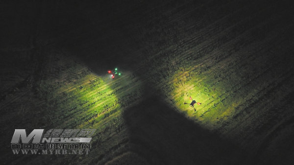 夜幕降臨,鹽亭縣富驛鎮(zhèn)龍壇村江角彎的田野上,一束束燈光劃破夜空,兩架搭載農(nóng)藥的無人機(jī)在空中來回穿梭,精準(zhǔn)對玉米地開展農(nóng)藥噴灑作業(yè)……這是鹽亭縣富驛鎮(zhèn)龍壇村推廣玉米飛防夜間“盲打”技術(shù)的作業(yè)現(xiàn)場。[