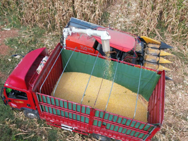 當前,綿陽梓潼縣玉米進入收獲季,聯(lián)合收割機在各個田間地頭忙碌,開啟豐收模式。[