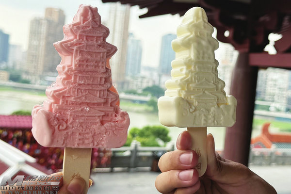 “目前,我們推出了兩款文創(chuàng)雪糕,一款是奶油味,一款是草莓味,您可以嘗一下……”8月13日,記者走進(jìn)越王樓景區(qū)游客中心,文創(chuàng)展區(qū)工作人員正在向游客介紹文創(chuàng)雪糕。 [