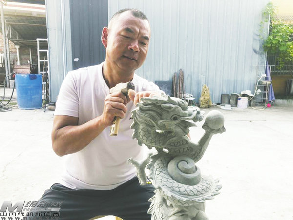 近日,記者在毗鄰三臺縣東山公園的一農(nóng)家小院里,見到綿陽市非遺石雕代表性傳承人陳曉順。出生于1976年的陳曉順,還不到50歲,就已兩鬢斑白。當記者問及緣由,他指著堆滿院落的石雕打趣說:“從14歲開始與石頭打交道,整天灰里鉆、土里出,人生快半百,自然頭發(fā)就被石灰染白了..[