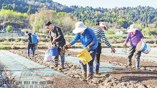 4月7日,記者在游仙區(qū)蔬菜種業(yè)現(xiàn)代農(nóng)業(yè)園區(qū)內(nèi)看到,村民們正搶抓農(nóng)時(shí),積極開展紅薯種植工作。 [