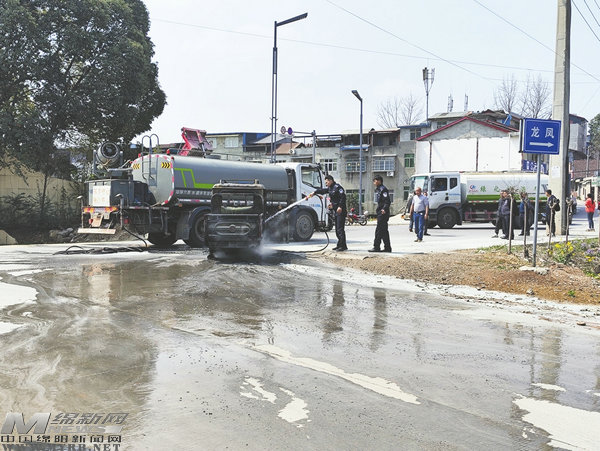 三輪車行駛中自燃警民聯(lián)手成功滅火