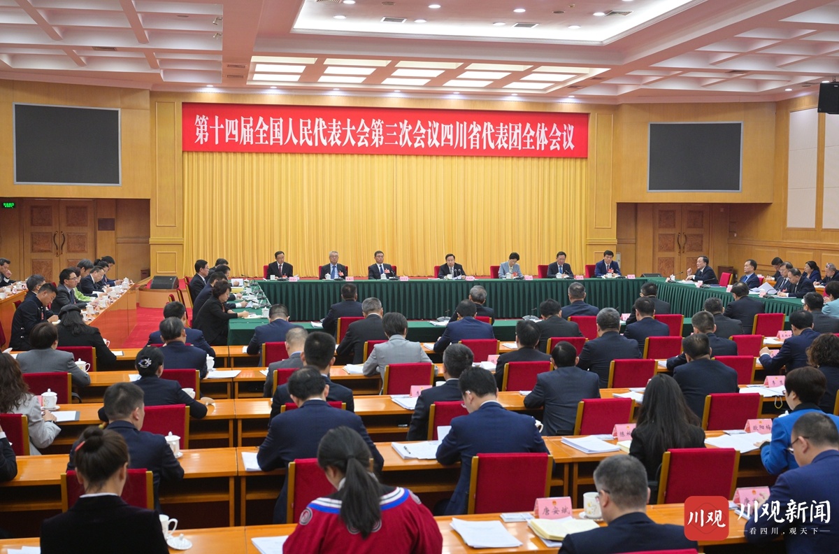 四川代表團舉行全體會議 繼續(xù)審議全國人大常委會工作報告和“兩高”工作報告 王曉暉施小琳等參加