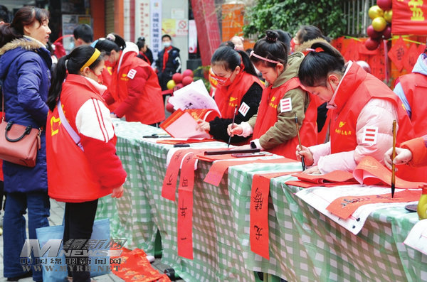 “愛(ài)心不分大小,只要您獻(xiàn)出愛(ài)心,就可以挑選一副心儀的春聯(lián)帶回家!”1月19日上午,在綿陽(yáng)市涪城區(qū)南河路,一群紅領(lǐng)巾志愿者正在寫(xiě)春聯(lián),舉辦義賣活動(dòng)。40余位少先隊(duì)員和2位老師用義賣春聯(lián)的愛(ài)心款購(gòu)買(mǎi)了生活用品,捐贈(zèng)給社區(qū)老人。 [