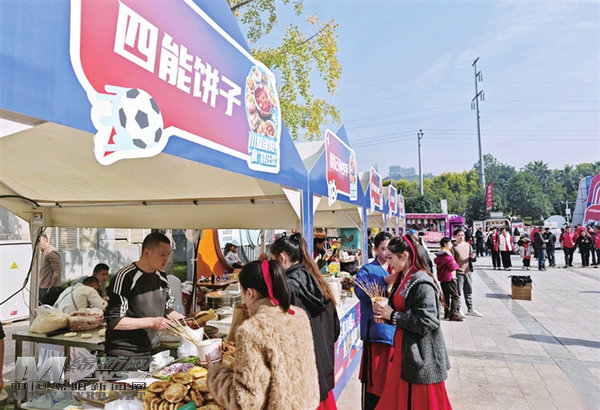 11月23日,在三臺縣體育場,綿陽隊主場迎戰(zhàn)阿壩隊。比賽開始前,賽場外一系列豐富多彩的文化和美食活動吸引了眾多球迷和市民的目光。 [