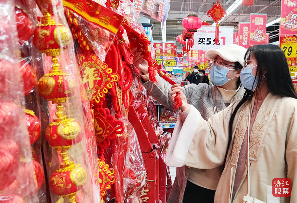 農(nóng)歷兔年春節(jié)將至,濃濃的年味撲面而來。1月6日,記者在綿陽城區(qū)各大超市看到,琳瑯滿目的年貨擺滿了貨架,前來選購年貨的人絡(luò)繹不絕,到處都是喜氣洋洋的景象。 [