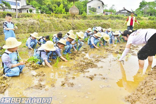 “小滿前后,插秧布禾?!?月23日,安州區(qū)河清鎮(zhèn)初級(jí)中學(xué)勞動(dòng)實(shí)踐基地里一片歡騰,在老師的帶領(lǐng)下,學(xué)生正按班級(jí)分田塊進(jìn)行插秧比賽。 [