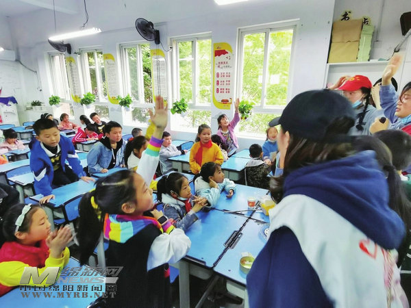 西南財經(jīng)大學(xué)天府學(xué)院雷鋒站的大學(xué)生志愿者在游仙區(qū)置信小學(xué)開展了“走進生活,走進科學(xué)”主題志愿服務(wù)活動,為小朋友們講解科學(xué)知識、開展科學(xué)小游戲。 [