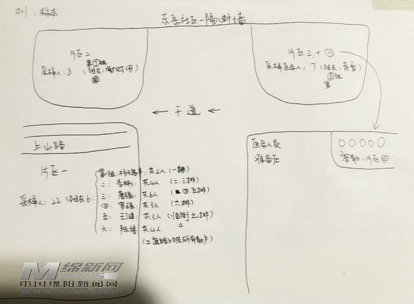 今年81歲的雷福興住家的位置相對(duì)偏僻,沒有人帶路很難找到。曾賢杰一行根據(jù)一份簡易的手繪地圖指引,順利到達(dá)雷福興家中。此前兩天,他們還是依靠這份地圖,對(duì)其他群眾進(jìn)行精準(zhǔn)的“上門采樣”。 [